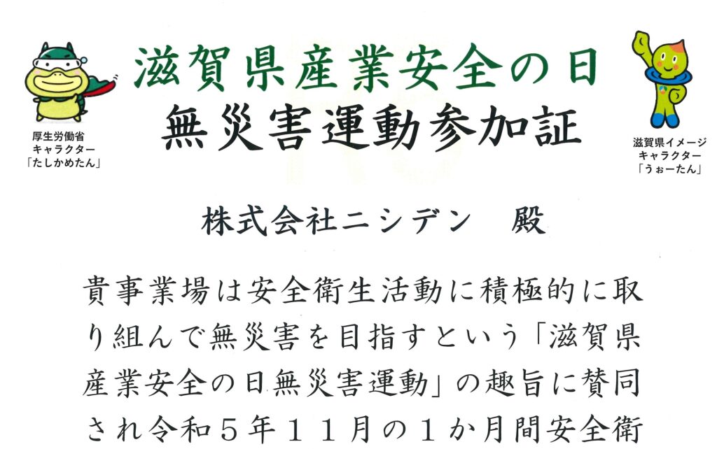 滋賀県産業安全の日 無災害運動に参加しました